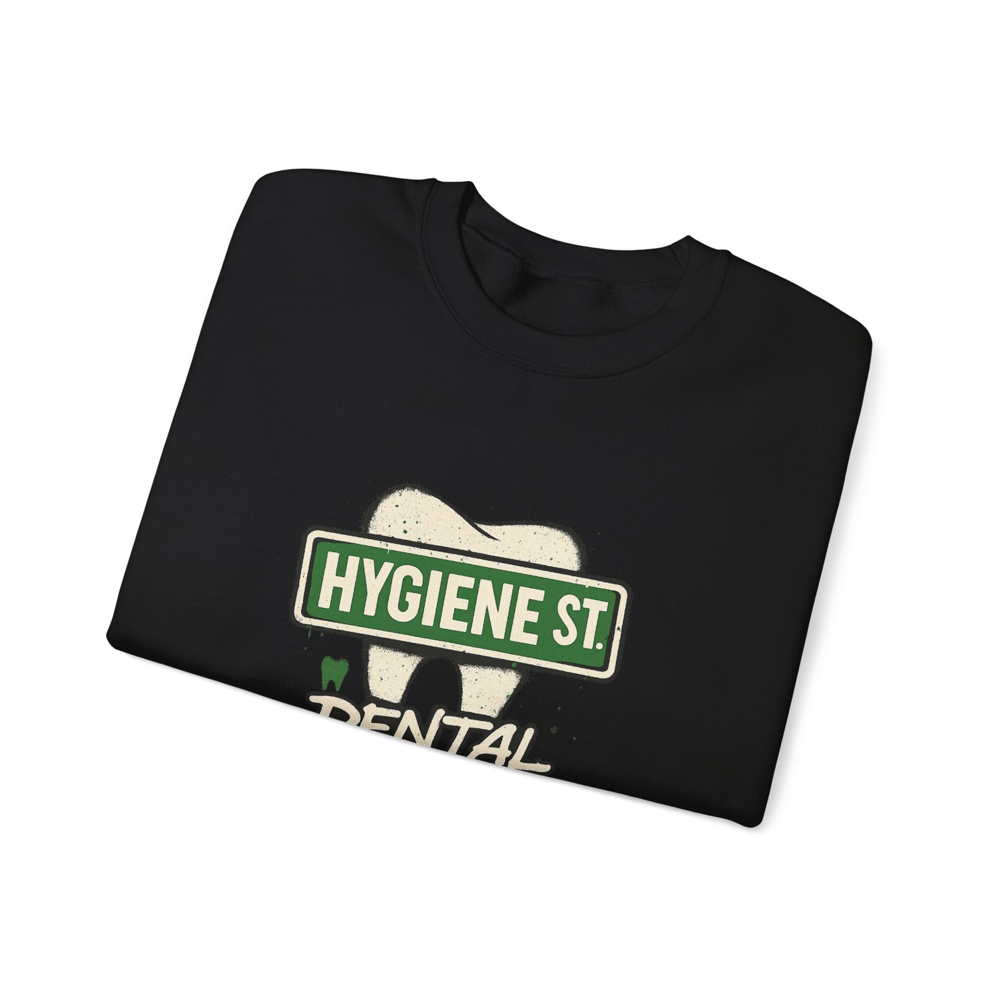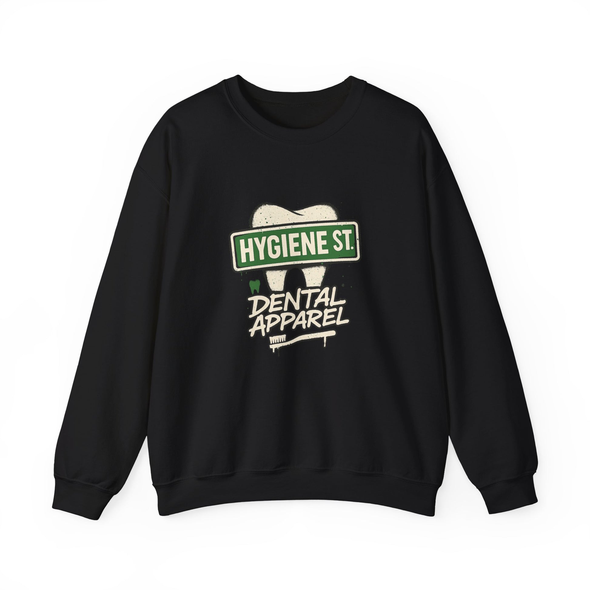 Represent your favorite dental brand in cozy style with the official Hygiene Street Dental Apparel sweatshirt. Designed by a dental hygienist for dental professionals, this crewneck combines everyday comfort with a sleek, streetwear-inspired design. Featuring the signature Hygiene St. street sign and toothbrush logo, it's the perfect blend of professionalism, pride, and personality - whether you're in the op or off the clock.
